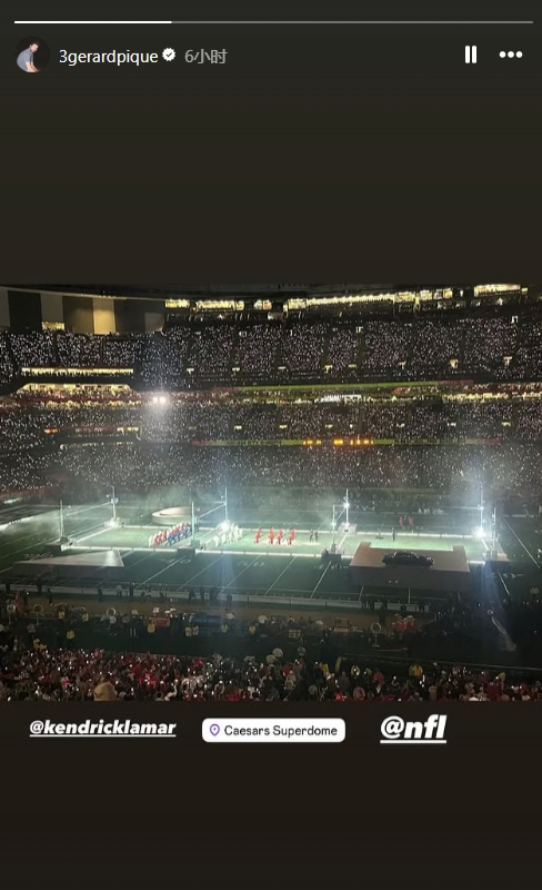 02月10日訊 第59屆NFL超級碗在新奧爾良舉行,最終老鷹擊敗酋長奪冠。阿爾巴賽前更新社媒曬出與梅西、蘇牙、布斯克茨合照。美國嘻哈巨星肯德里克-拉馬爾帶來超級碗中場秀時,皮克曬照也在現(xiàn)場。 標(biāo)簽: 足球 西甲 巴塞羅那 邁阿密國際 梅西