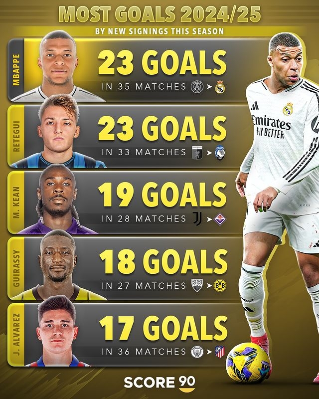 2月11日訊 日前,德國轉(zhuǎn)會(huì)市場統(tǒng)計(jì)了本賽季新援參與進(jìn)球、進(jìn)球排行,姆巴佩均位列第一。