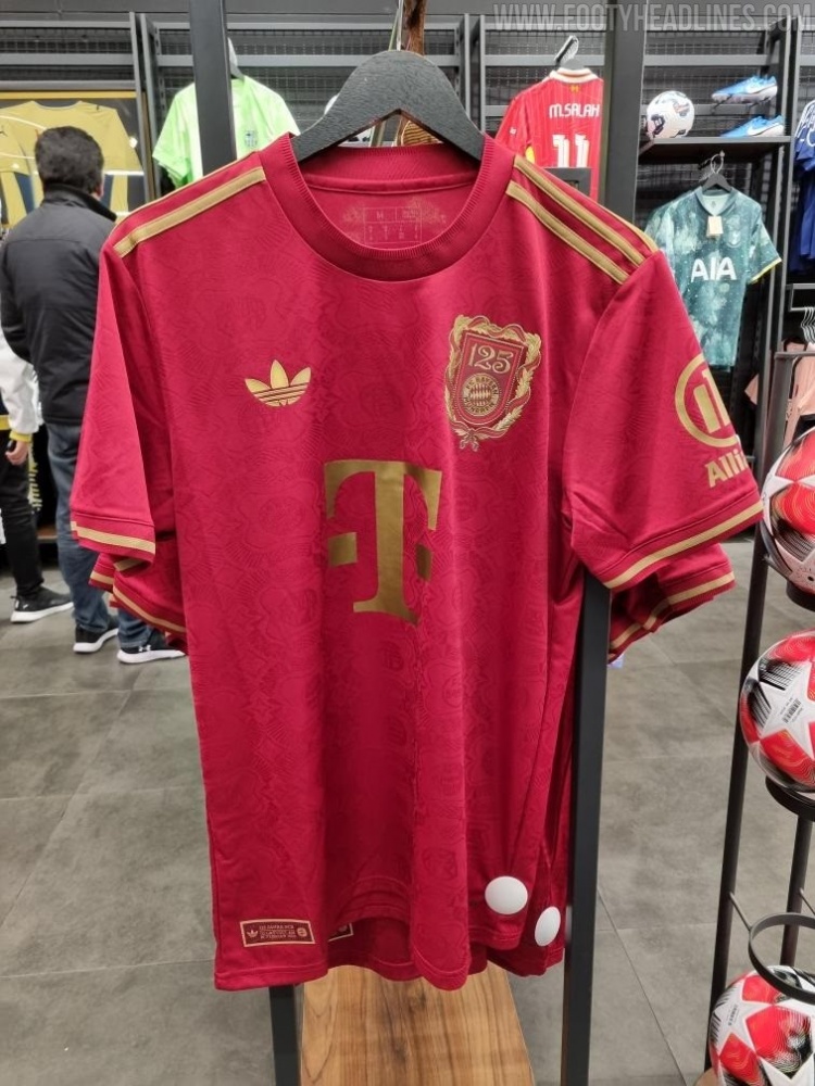 從不久前曝光的拜仁紀(jì)念球衣照片可以看出,這款球衣采用了深紅色主色調(diào)和金色鑲邊裝飾,經(jīng)典三葉草LOGO、印有125字樣并以月桂花環(huán)裝飾的拜仁盾式隊(duì)徽分列胸前。