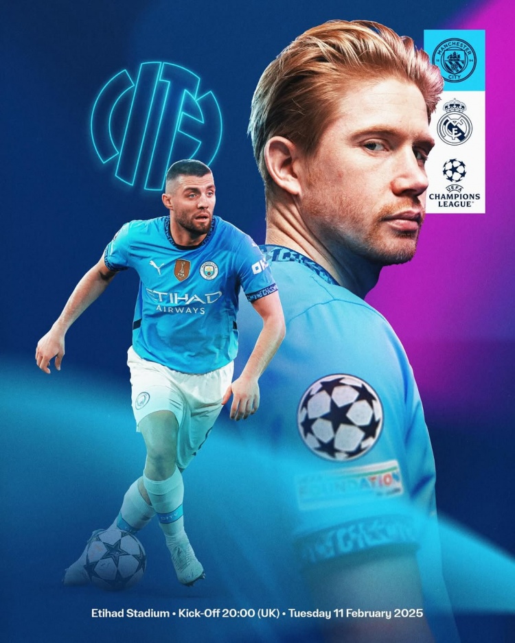 曼城官方社媒發(fā)布了為此役制作的海報(bào),德布勞內(nèi)、科瓦西奇出鏡。