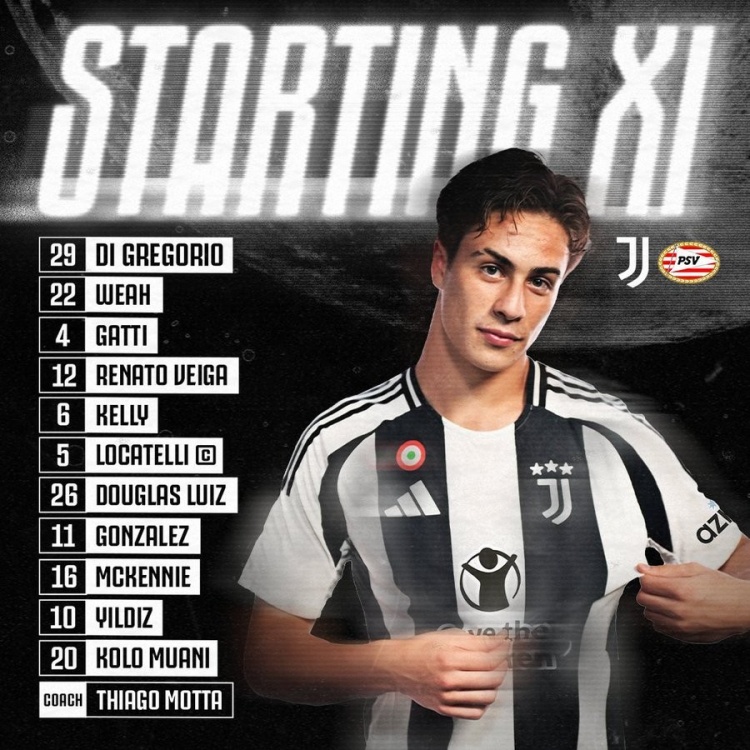 2月12日訊 尤文在本輪歐冠附加賽對陣埃因霍溫,首發(fā)名單已經(jīng)公布。