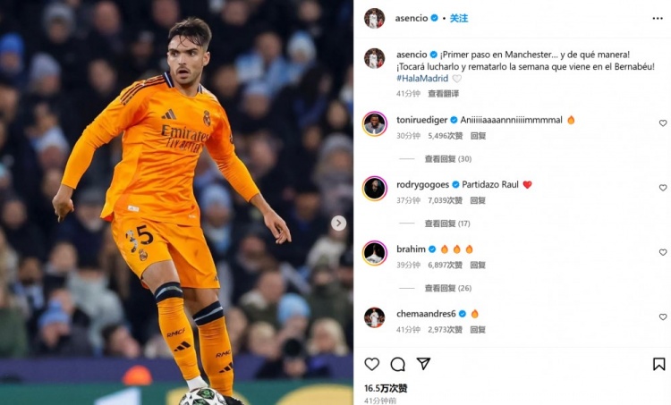 因傷缺席的皇馬中衛(wèi)呂迪格也現(xiàn)身評(píng)論區(qū),并以搞怪方式送上鼓勵(lì):“Aniiiiiaaaannniiiimmmmal????”,可能是用英語形容勞爾-阿森西奧的表現(xiàn)堪稱野獸(animal)。