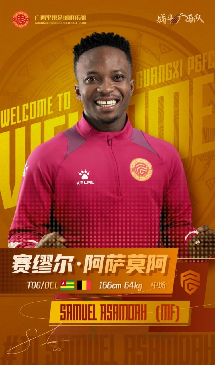 新賽季,新形象,新征程!歡迎塞繆爾·阿薩莫阿加盟廣西平果足球俱樂部,2025賽季,愿我們一起攜手并進,發(fā)揮出色的表現(xiàn),為廣西而戰(zhàn)!