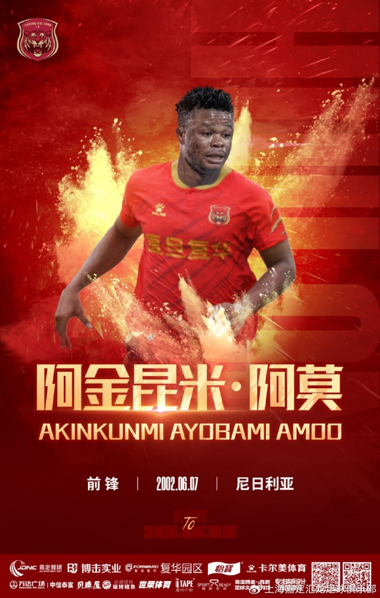 經過友好協(xié)商,球員阿金昆米·阿莫正式加盟上海嘉定匯龍足球俱樂部。