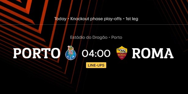 2月14日訊 歐聯(lián)杯淘汰賽附加賽首回合,波爾圖主場(chǎng)面對(duì)羅馬,賽前雙方公布了首發(fā)名單。