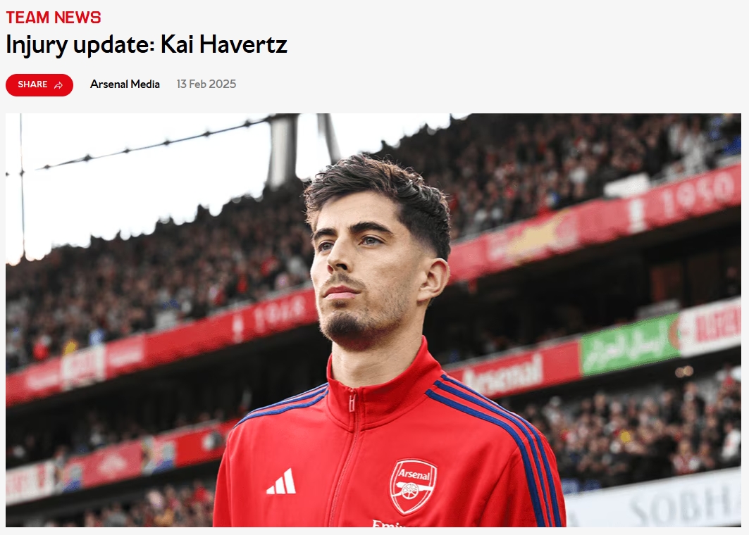 阿森納官方公布哈弗茨傷情,球員在訓(xùn)練中腿筋受傷,本賽季報(bào)銷。