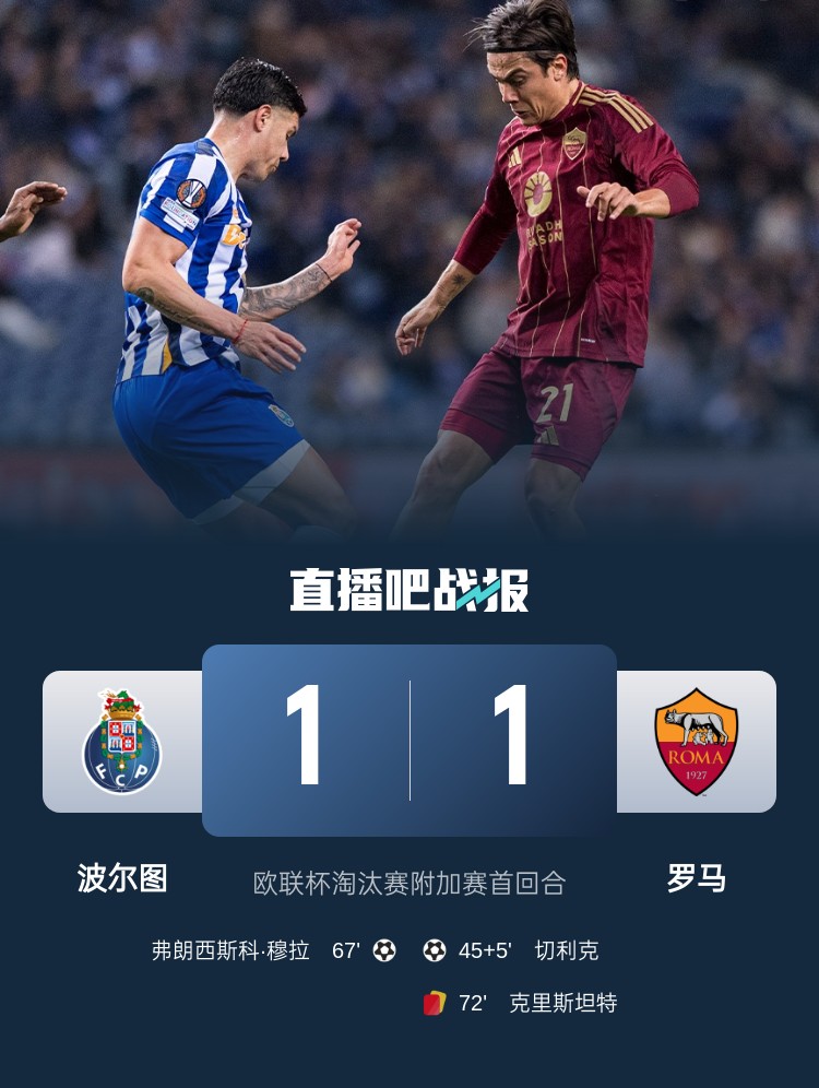 歐聯(lián)-十人羅馬1-1波爾圖 切利克破門迪巴拉傷退克里斯坦特被罰下