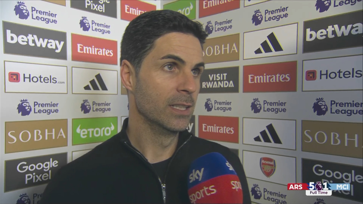 02月03日訊 英超焦點(diǎn)戰(zhàn),阿森納5-1血洗曼城。賽后阿森納主帥阿爾特塔接受了BBC和天空體育的采訪,談?wù)摿吮緢?chǎng)比賽的一些話題。