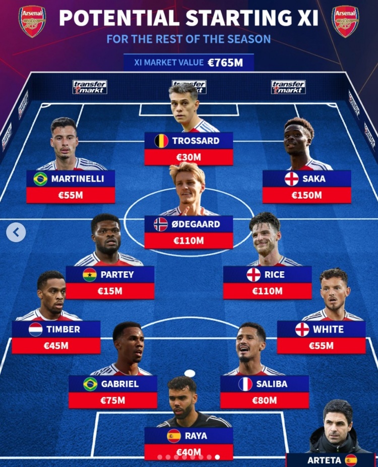 德轉(zhuǎn)預測阿森納下半程首發(fā):總身價7.65億歐元