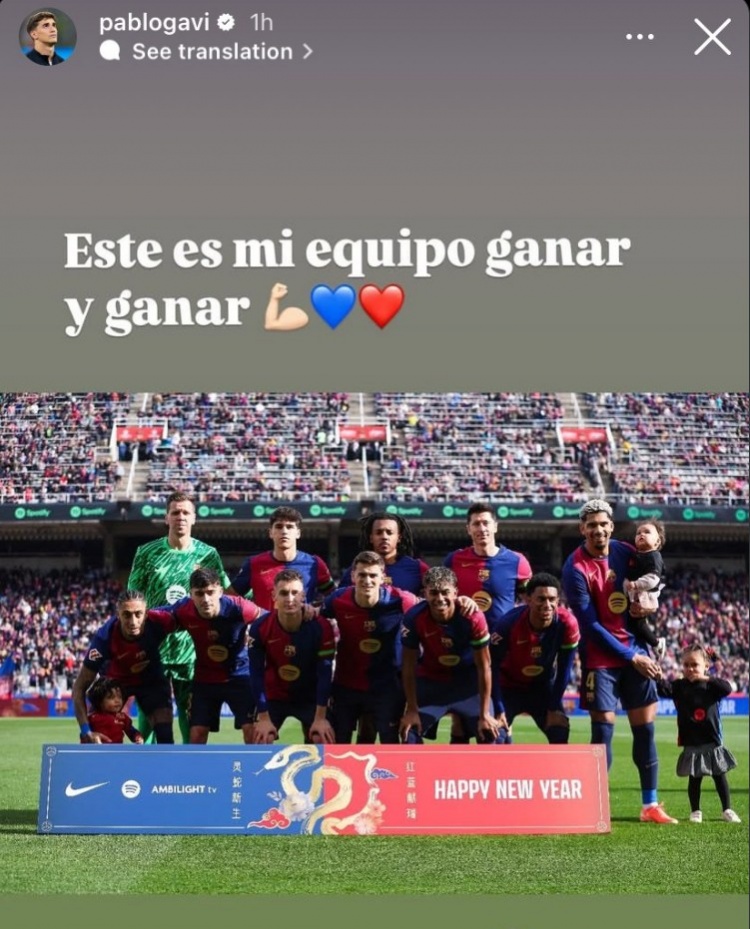 本場比賽巴薩球員加維與對手頭部相撞后被抬離出場,在接受檢查后已獲準(zhǔn)回家休養(yǎng)。加維在個人社媒曬出全隊(duì)賽前合影,配文寫道:“這就是我的球隊(duì),一直贏下去!”