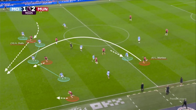 曼聯(lián)的制勝進(jìn)球是令人震驚的,尤其是上半場早些時候利桑德羅-馬丁內(nèi)斯在身后為霍伊倫送出了幾乎相同的傳球。曼城根本就沒有吸取教訓(xùn)。