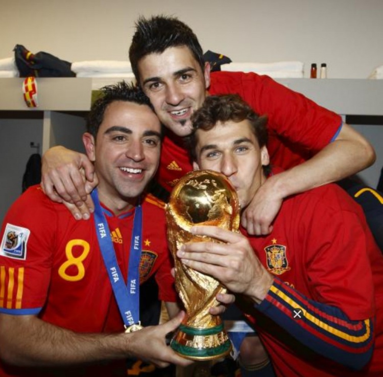在“sefutbol”的帖子中,有幾張那屆世界杯的照片,上面是幾位冠軍球員的照片,其中一張照片顯示了一群球員,包括普約爾、大衛(wèi)-比利亞、伊涅斯塔、馬塔、哈維、略倫特、阿爾比奧爾、馬切納和哈維-阿隆索。