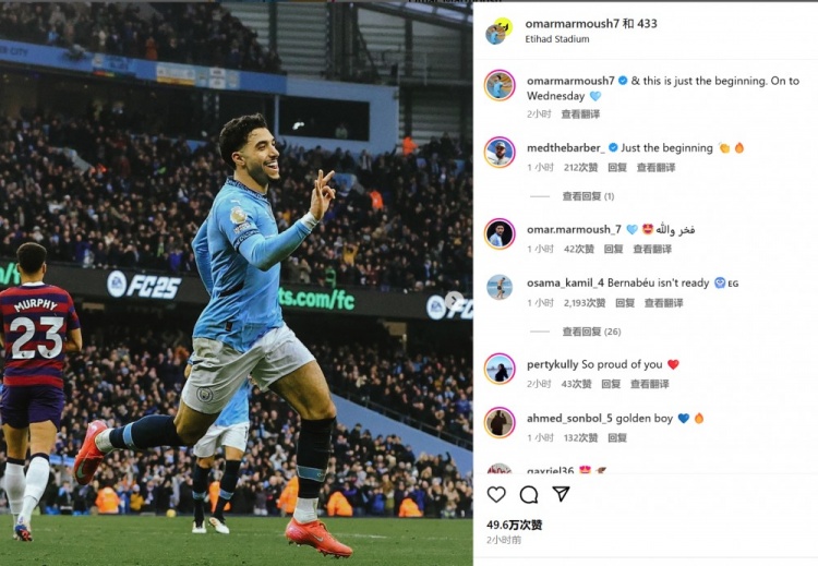 他也在賽后通過社媒曬出自己進球后比出“3”手勢的慶祝照,并配文:“這只是開始,周三再見????”。首回合主場2-3落敗的曼城,將在下周三歐冠附加賽次回合客戰(zhàn)皇馬。