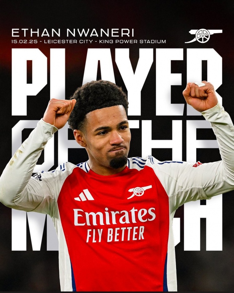 阿森納官推在賽后宣布,經(jīng)過球迷投票,恩瓦內(nèi)里當(dāng)選本場(chǎng)比賽隊(duì)內(nèi)最佳球員。