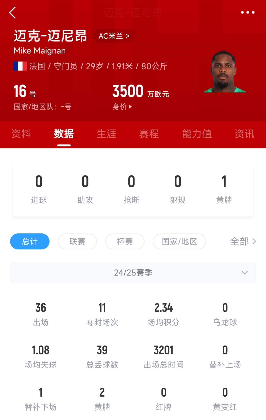 本賽季邁尼昂代表米蘭出戰(zhàn)36場(chǎng)比賽丟39球,完成11次零封。邁尼昂與米蘭的現(xiàn)有合同將在2026年6月到期,他在米蘭的稅后年薪為280萬(wàn)歐元。續(xù)約后500萬(wàn)歐的年薪,將使邁尼昂與萊奧持平,成為米蘭隊(duì)內(nèi)薪水最高的球員。