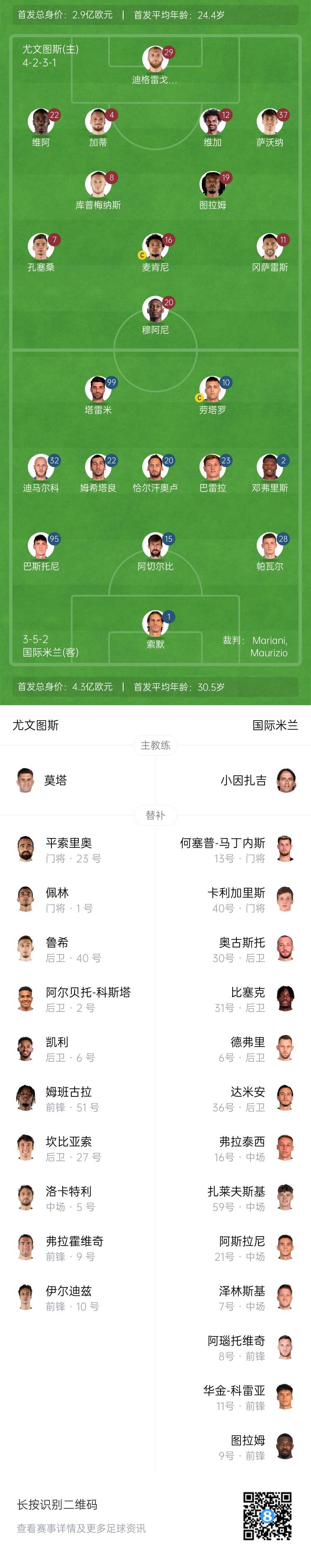 2月17日訊 意甲第25輪,尤文主場對陣國米。賽前,官方公布了本場的首發(fā)名單。